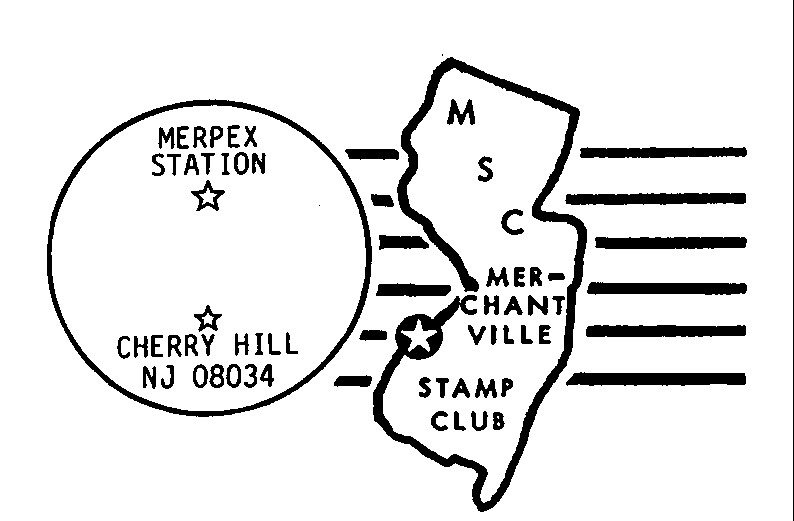 The cachet depicts the logos of the Merchantiville Stamp Club based on US C13-C15 originally modified by Ed Mathias and reworked by James Natale.